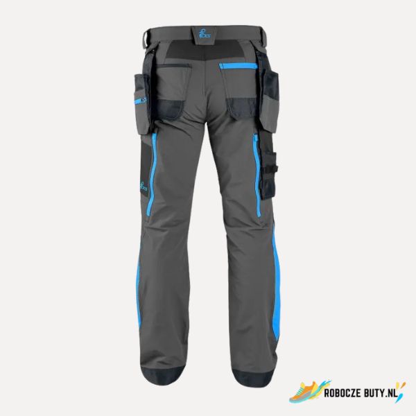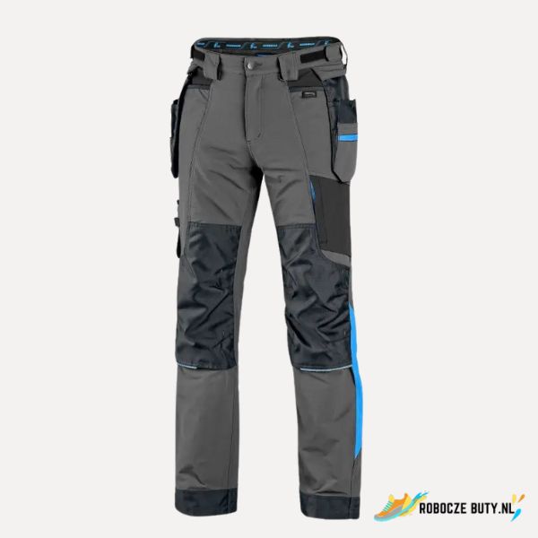 Spodnie CXS NAOS, męskie, kolor szaro-czarny, HV niebieskie elementy