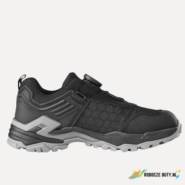 Obuwie ochronne z kompozytowym podnoskiem i tekstylną wkładką antyprzebiciową, trwałe i komfortowe. Specjalny system szybkiego zapinania umożliwia łatwe i szybkie zakładanie oraz zdejmowanie. Materiał: cholewka z wytrzymałego materiału PUTEK® w połączeniu z mikrofibrą i gumowym zabezpieczeniem noska, podszewka z oddychającej tkaniny Mesh i mikrofibry, komfortowa wkładka HI-POLY. Podeszwa: EVA + guma, trwała, antypoślizgowa, wygodna w użytkowaniu, odporna na oleje i odporna na temperatury do 300 °C. Przeznaczone do wymagającej pracy w terenie.