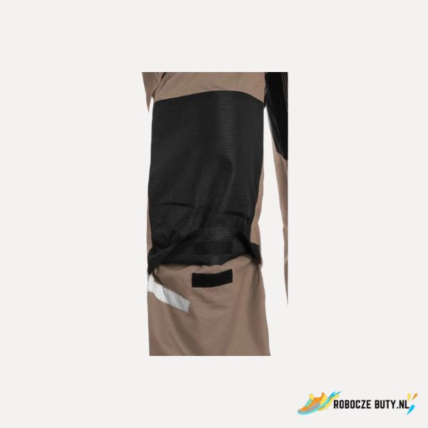 Męskie spodnie robocze, tkanina stretch zapewniająca swobodny ruch, szlufki na pasek, przednie kieszenie z kieszonką na zamek, z boku kieszenie wielofunkcyjne, kolana wzmocnione poliestrem 600D z możliwością włożenia nakolanników, dwie tylne kieszenie – jedna z patką, brzeg nogawek z tyłu wzmocniony poliesterem 600D, elementy odblaskowe. Zalecane zastosowanie: inżynieria, budownictwo, przemysł lekki, motoryzacja, logistyka, magazyn, spedycja, garaż, konserwacja, montaż, rolnictwo, ogród, hobby.