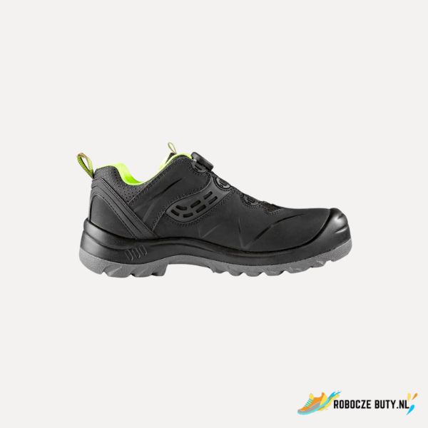 Półbut skórzany z plastikowym noskiem i wkładką Dyna-Flex®, elementy odblaskowe. Specjalny system zapinania pozwala na szybkie zdejmowanie butów. Materiał: cholewka z 1,6 – 1,8 mm dwoiny nubukowej (z jednego kawałka), nosek z PU wzmocnieniem, TPU napiętek ochronny, podszewka z włókniny przewiewnej odpornej na ścieranie, podeszwa: PU-PU, olejoodporna, antystatyczna, przeciwpoślizgowa, odporna na przebicie.