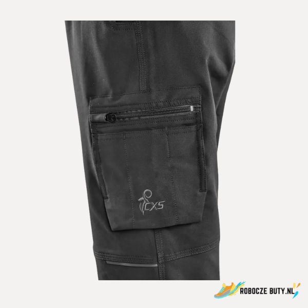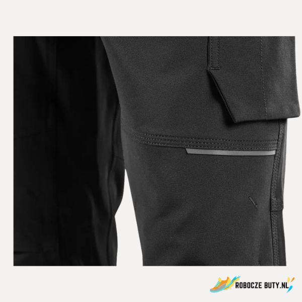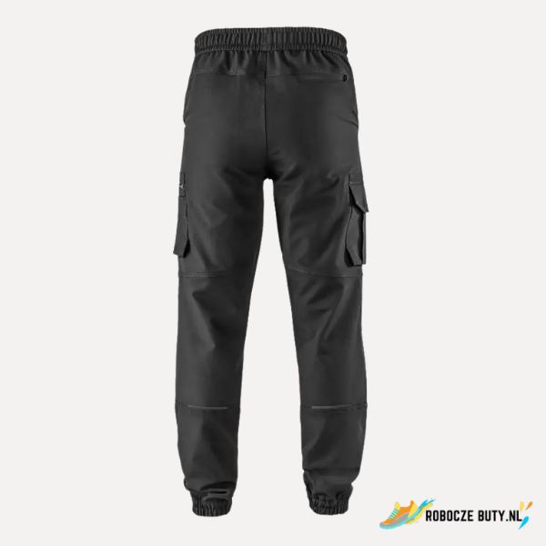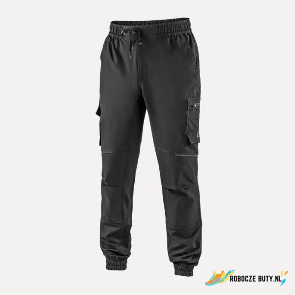 Męskie spodnie typu jogger o nowoczesnym kroju slim-fit, odpowiednie zarówno do pracy, jak i na czas wolny. Wykonane z materiału 4-way stretch, który dzięki swojej elastyczności dopasowuje się do każdego rodzaju ruchu. Spodnie wyposażone są w elastyczny pas z gumką i ściągaczem do regulacji rozmiaru, boczne kieszenie, tylną kieszeń na zamek, wielofunkcyjne kieszenie na udach oraz mniejszą kieszeń listwową na drobne przedmioty. Kolana są wzmocnione i ergonomicznie ukształtowane. Nogawki zakończone elastycznym ściągaczem. Spodnie posiadają również subtelne elementy odblaskowe. Zalecane zastosowanie: kierowcy, logistyka, magazyn, ogród i hobby, outdoor.